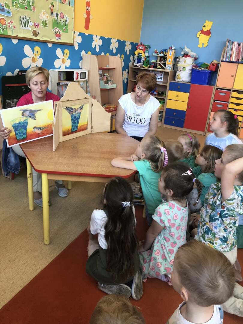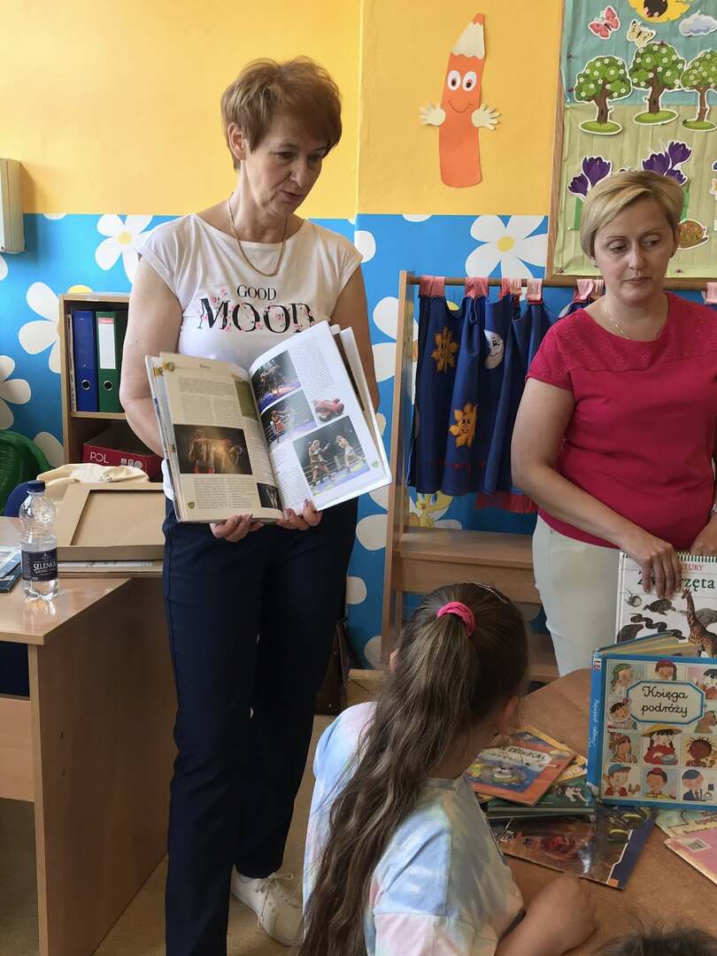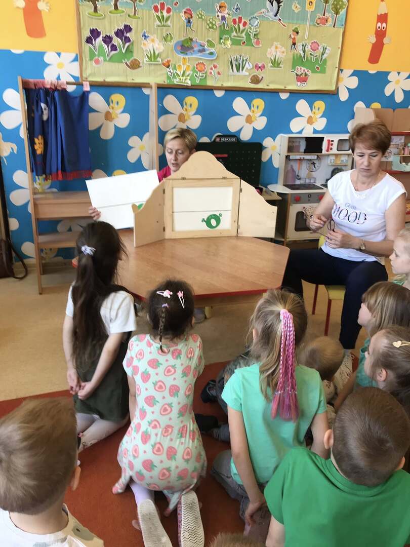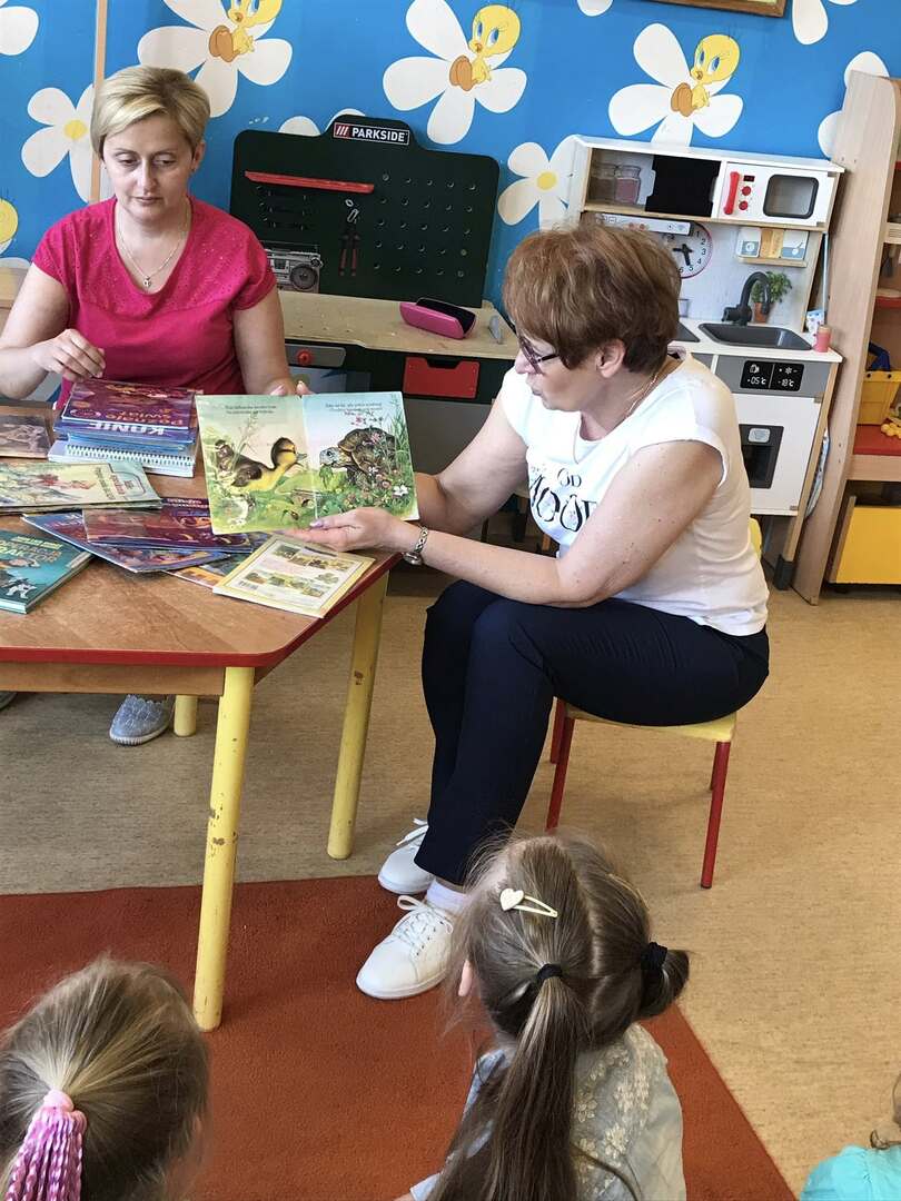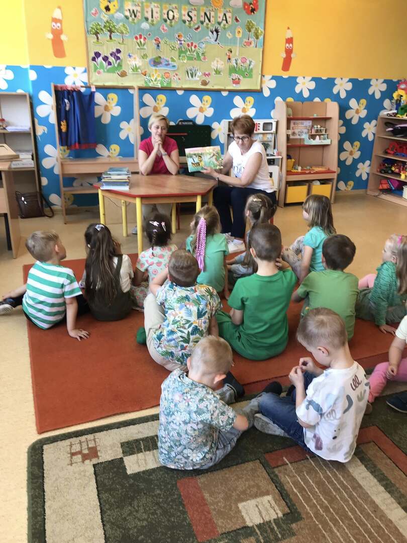 23 kwietnia obchodzimy Światowy Dzień Książki i Praw Autorskich, czyli święto autorów, ilustratorów i wydawców książek oraz czytelników, organizowane w celu promocji czytelnictwa, edytorstwa i ochrony własności intelektualnej za pomocą praw autorskich. W tymże dniu do oddziału przedszkolnego zawitali niezwykli goście pani Iwona Grotecka oraz pani Magdalena Kolano z Miejsko - Gminnej Biblioteki Publicznej w Woźnikach, które przeprowadziły interesujące warsztaty czytelnicze oraz odczytały bajki techniką kamishibai. Podczas tego spotkania dzieci miały możliwość rozwijania zainteresowań czytelniczych, kształtowania wyobraźni, spostrzeżeń czy zdobywania niezwykle przydatnej wiedzy.