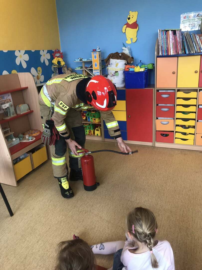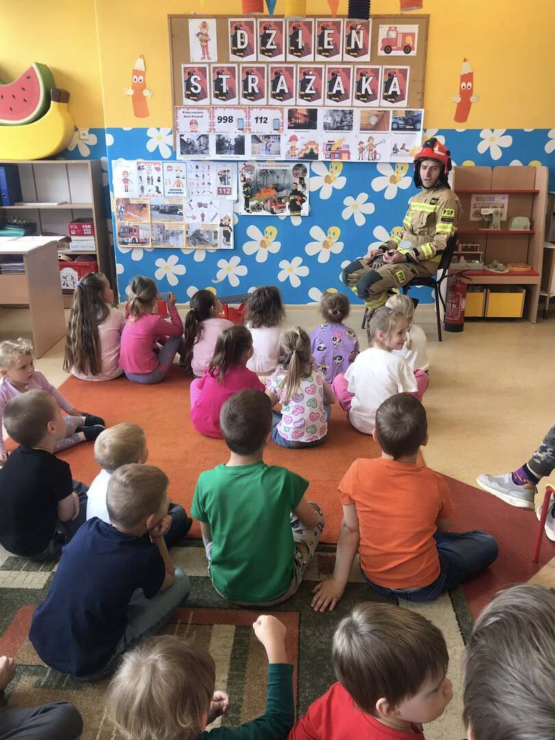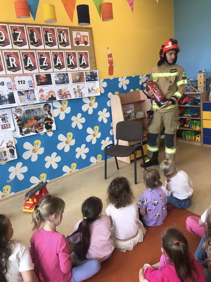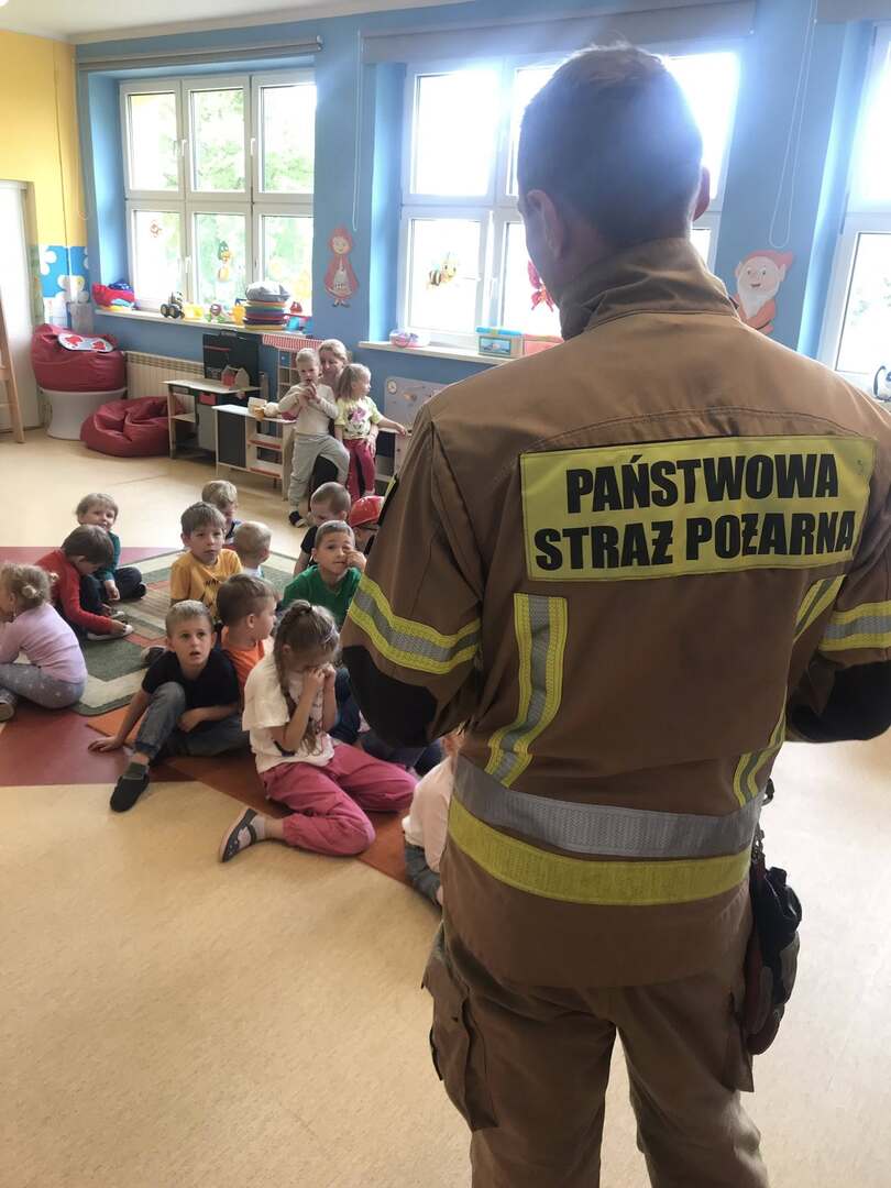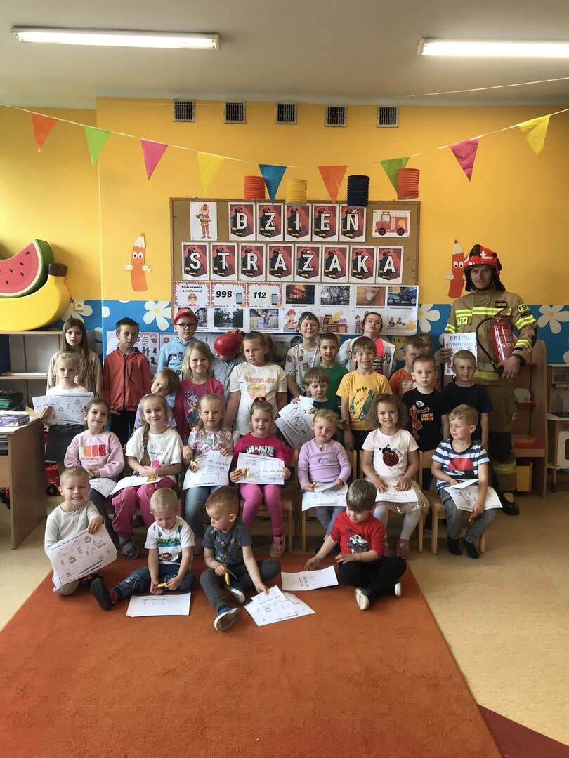 Serdecznie dziękujemy Panu Szymonowi - Strażakowi z Państwowej Straży Pożarnej z Pyskowic za wizytę w naszym przedszkolu oraz za przekazanie dzieciom tak wielu cennych wiadomości o swojej służbie, a także o bezpieczeństwie, atrybutach i stroju strażackim.