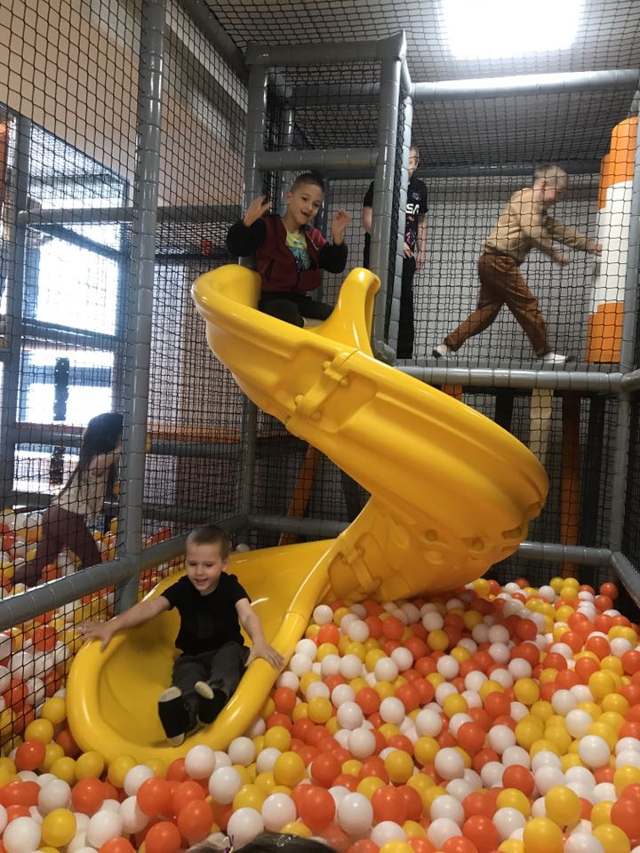 Po seansach filmowych nadszedł czas na prawdziwe szaleństwo – odwiedziliśmy Bawilandię, gdzie dzieci mogły się wyszaleć, wspinać, zjeżdżać i śmiać bez końca!To był dzień pełen radości, emocji i wspólnych przygód – a uśmiechy dzieci mówiły wszystko!
