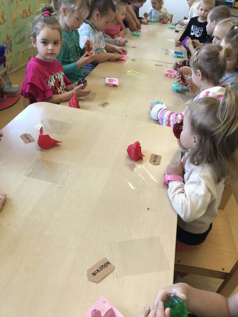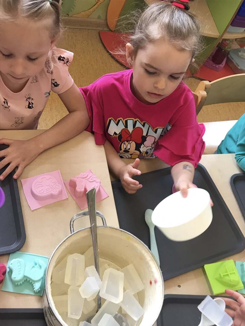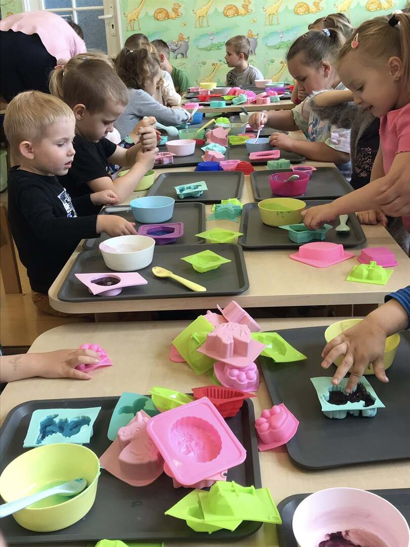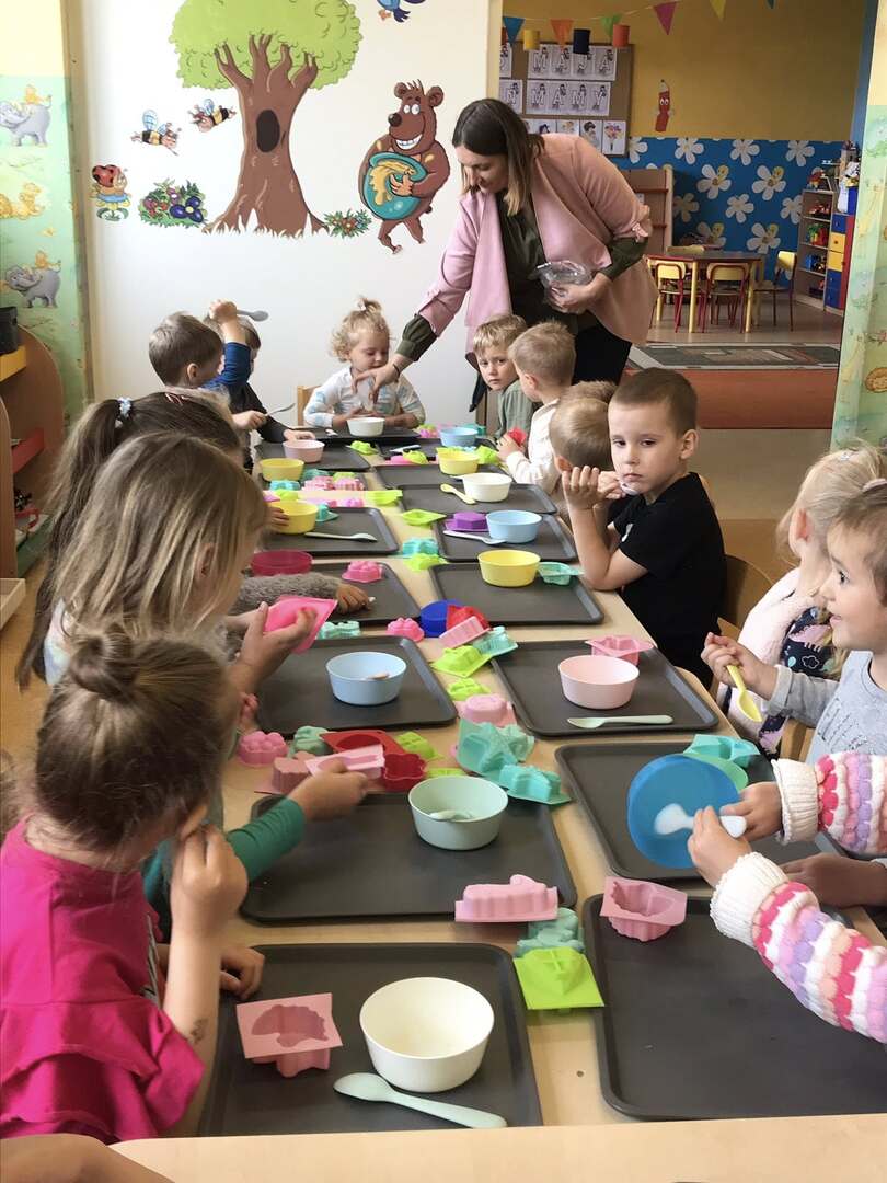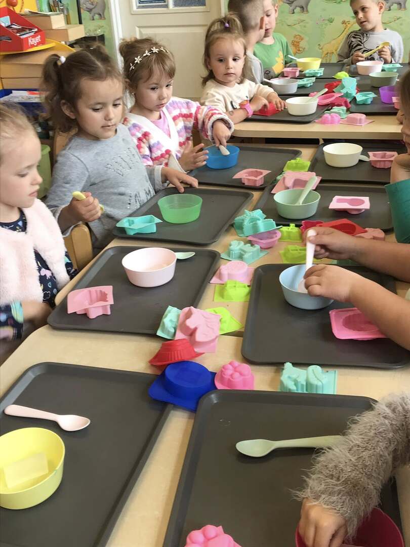 Dziś nasze przedszkolaki przeżyły niezwykle twórczy dzień! Wzięły udział w kreatywnych warsztatach zorganizowanych przez Akademia Możliwości w Hadrze Centrum Ekologiczno-Edukacyjne. Dzieci z ogromnym zaangażowaniem tworzyły kolorowe, pachnące mydełka. Każdy mógł ozdobić swoje mydełko według własnego pomysłu – wybierając ulubione kolory i dodatki Było twórczo, radośnie i bardzo kolorowo!