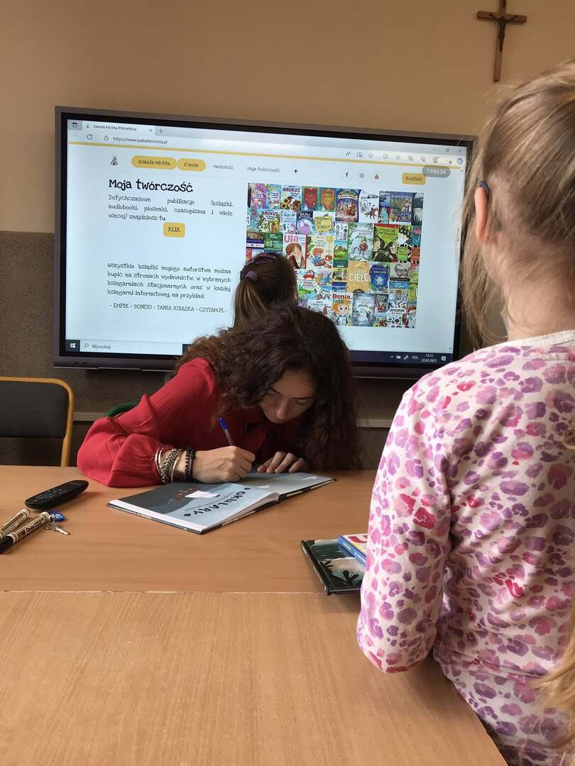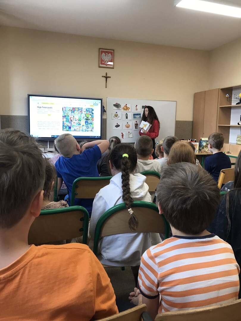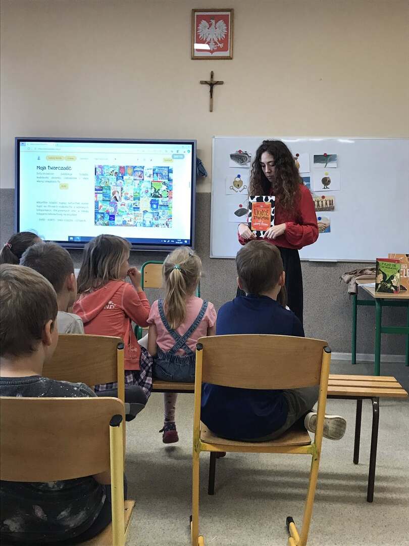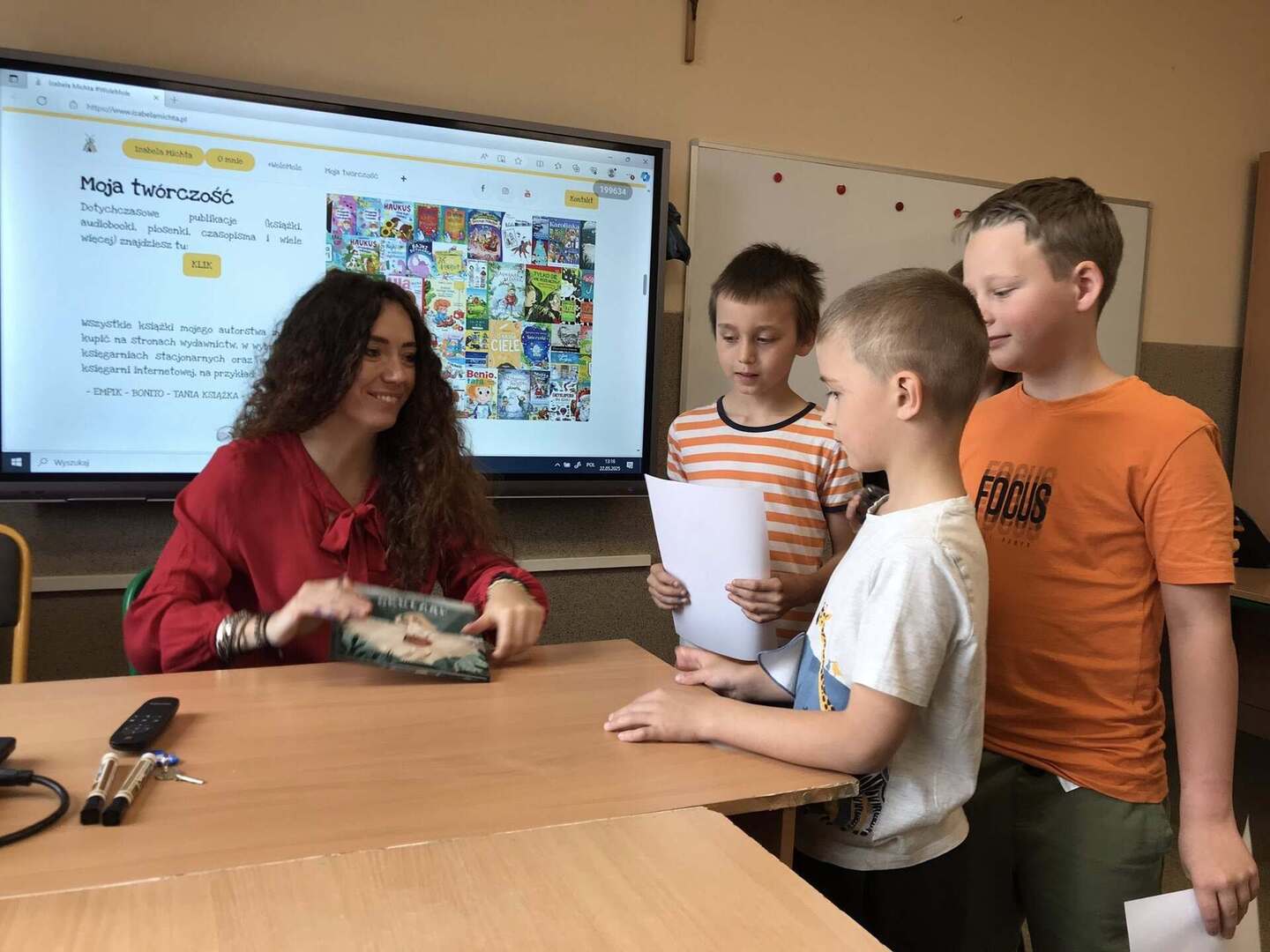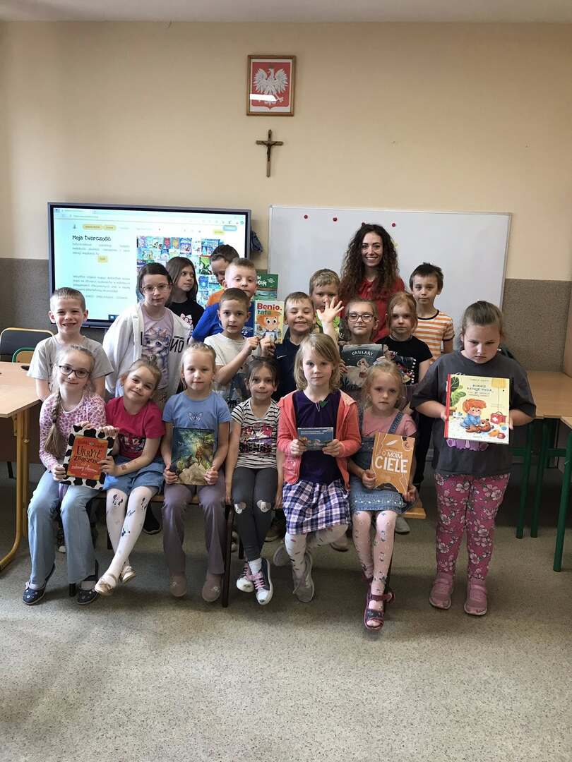 Uczniowie klas 2 i 3 mieli dziś wyjątkową okazję uczestniczyć w spotkaniu autorskim z Panią Izabelą Michtą – autorką wielu książek, piosenek i słuchowisk dla dzieci. Podczas spotkania dzieci dowiedziały się, na czym polega praca pisarza, zadawały pytania, brały udział w zabawach oraz miały okazję zdobyć autografy i dedykacje. Pani Izabela z pasją opowiadała o swojej twórczości oraz o tym, jak ważne jest codzienne czytanie dzieciom. Jako inicjatorka akcji #WoleMole zaraża miłością do książek i zachęca do wspólnego rodzinnego czytania. To było niezwykle inspirujące spotkanie, które na długo zostanie w pamięci naszych uczniów.