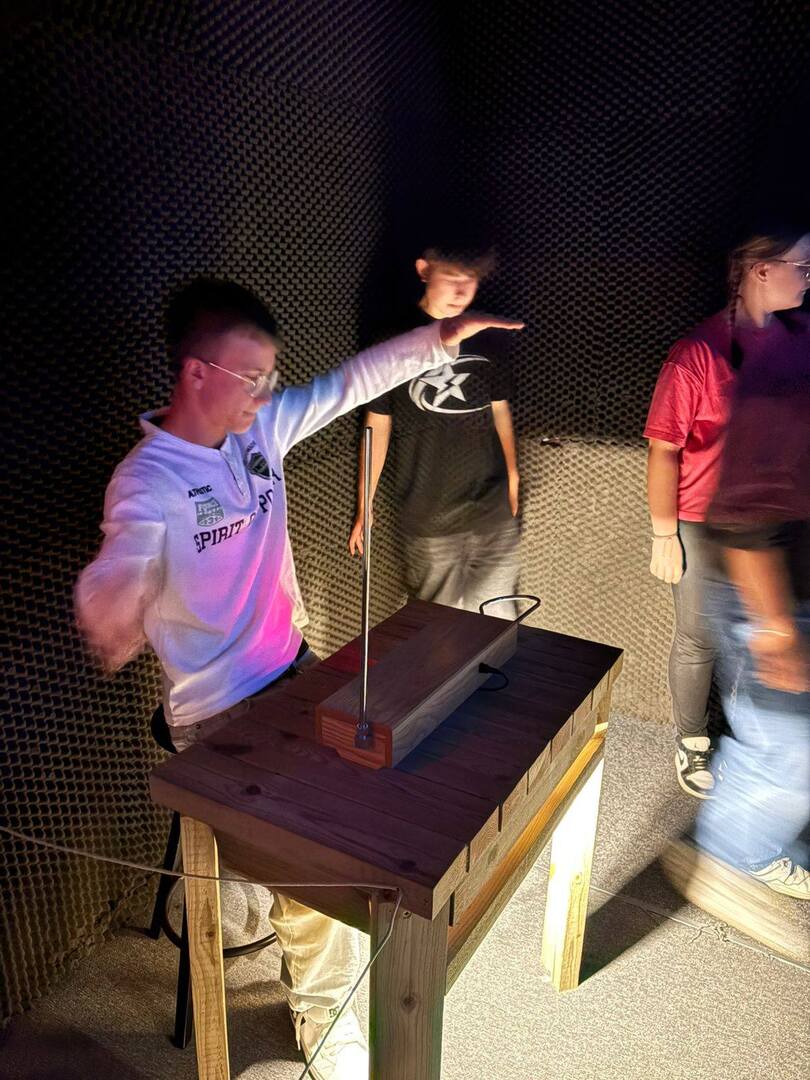 Głównym punktem wycieczki było zwiedzanie Centrum Nauki i Zmysłów WOMAI, gdzie uczniowie mogli przekonać się, jak fascynująca może być nauka. Podczas zwiedzania interaktywnej wystawy „W stronę światła”, poznawali właściwości światła i dźwięku w praktyczny sposób. Szczególne wrażenie zrobiło specjalnie wyciszone pomieszczenie, w którym grali na „niewidzialnych” instrumentach — stawały się one widoczne dopiero w obecności dymu, co dostarczyło wielu emocji i zaskoczenia.