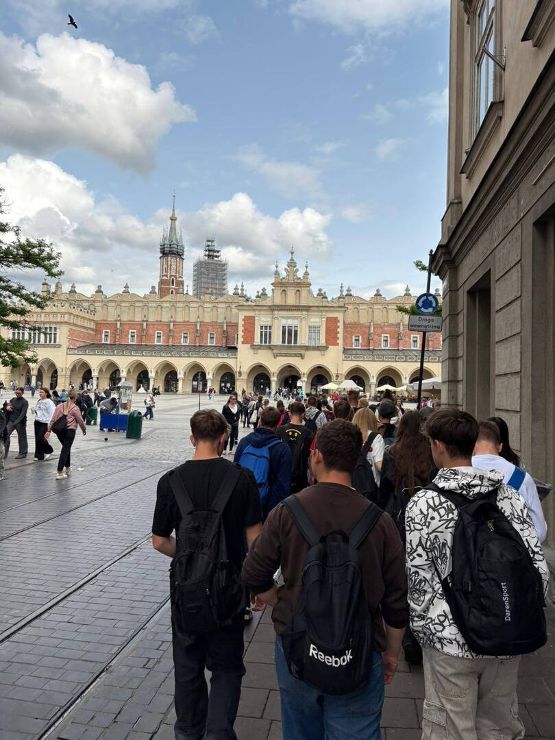 Po naukowych atrakcjach przyszedł czas na spacer po Krakowie . Uczniowie zwiedzili Planty, Rynek Główny, gdzie podziwiali Sukiennice, Kościół Mariacki oraz pomnik Adama Mickiewicza. Spacerując po historycznych ulicach miasta, chłonęli atmosferę dawnej stolicy Polski i poznawali jej najważniejsze zabytki.
