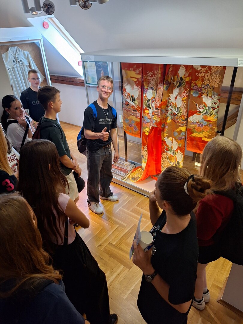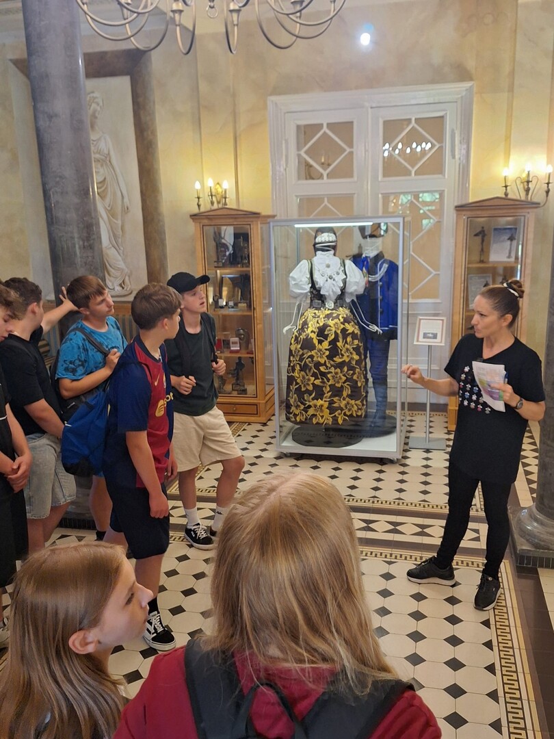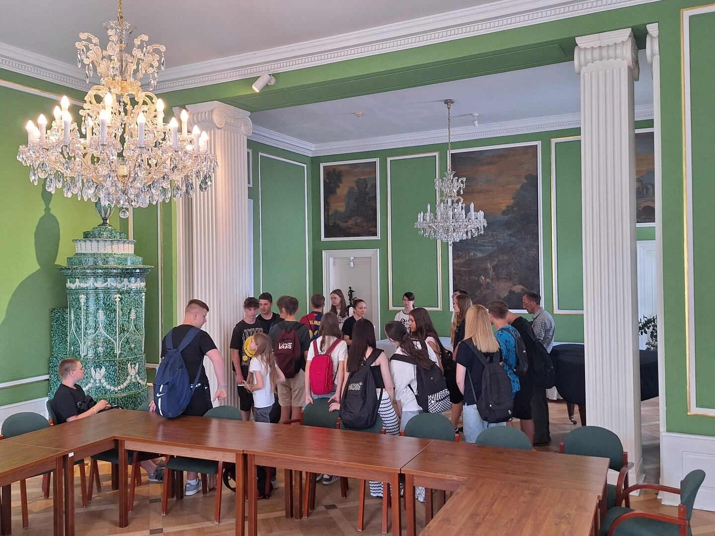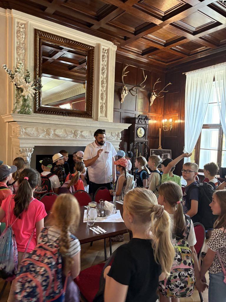 Na młodych uczestników czekało wiele atrakcji. Podczas zwiedzania odkryli najpiękniejsze sale pałacu, obejrzeli ciekawe wystawy oraz wspięli się na wieżę widokową, z której podziwiali rozległą panoramę Koszęcina. Spacer alejkami krajobrazowego parku był nie tylko chwilą wytchnienia, ale i okazją do refleksji przy słynnej „Ławeczce Profesorskiej”, gdzie stanęli oko w oko z postacią Stanisława Hadyny – założyciela Zespołu „Śląsk”.