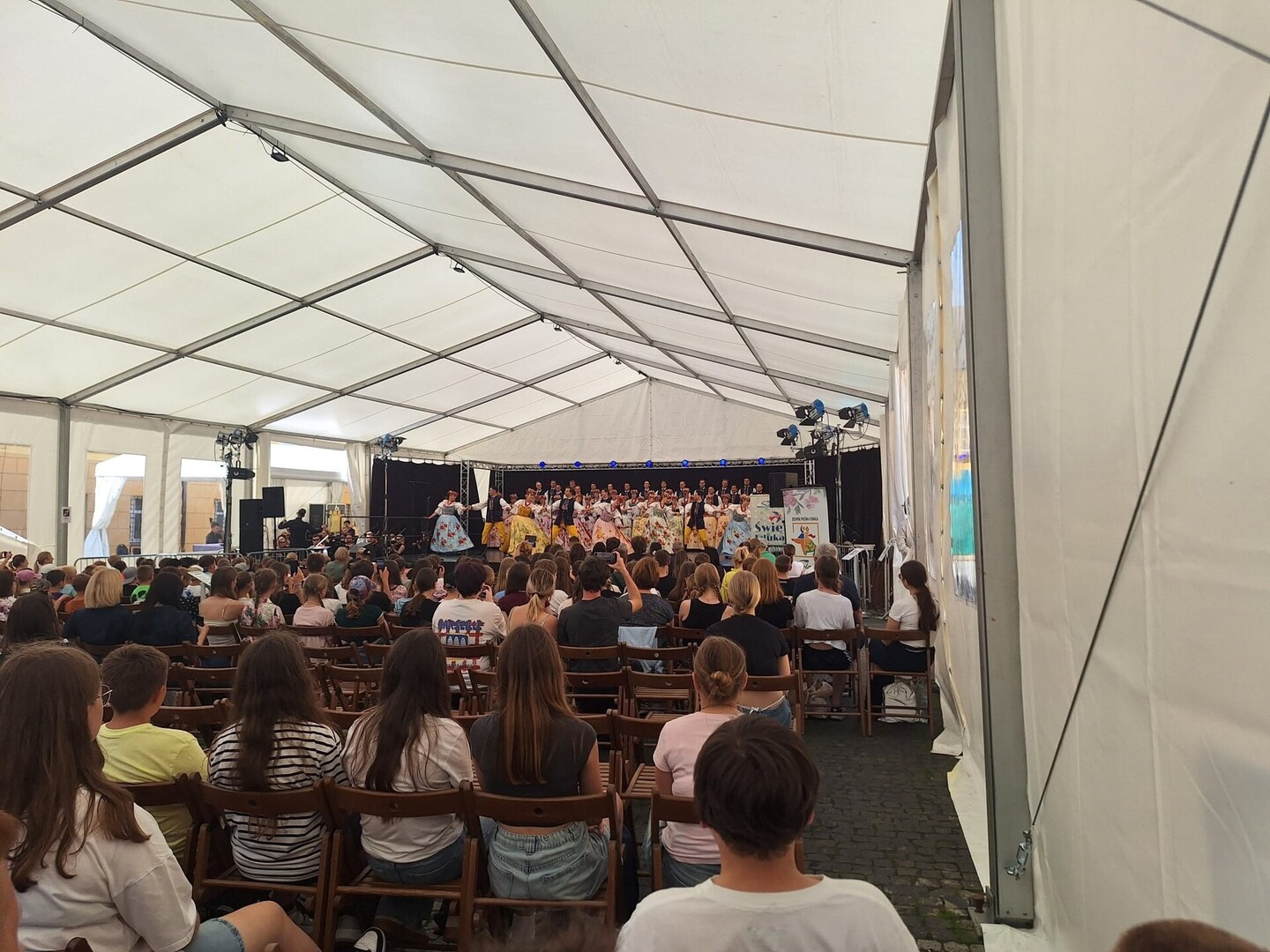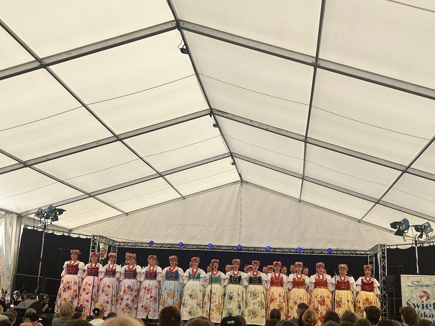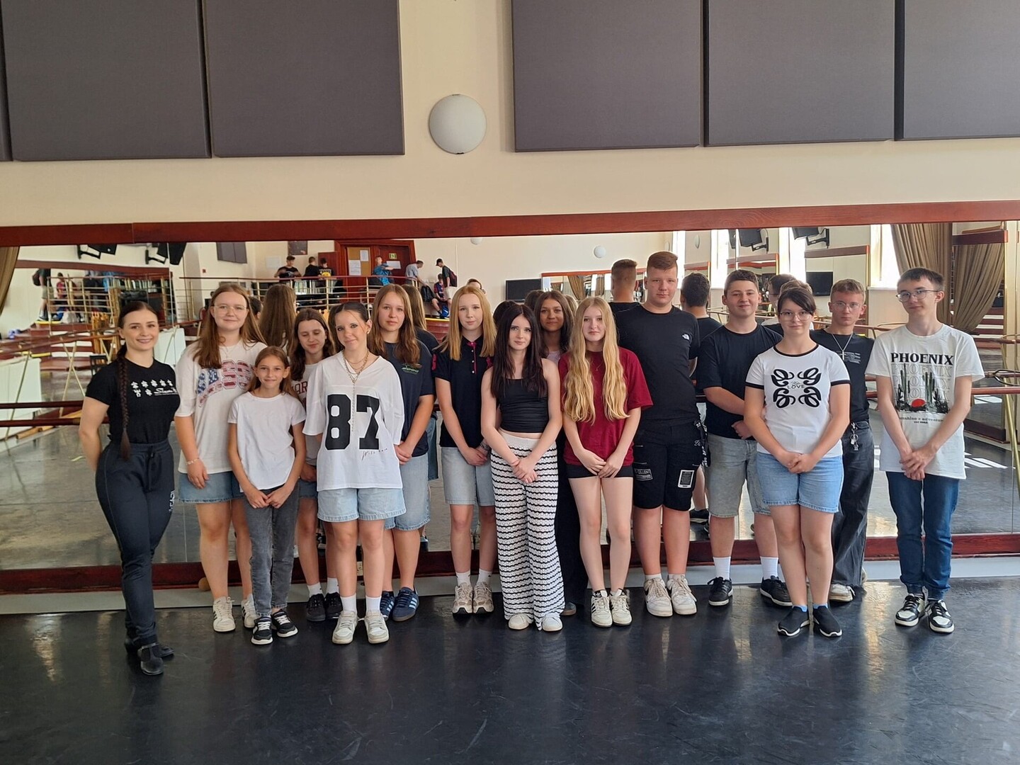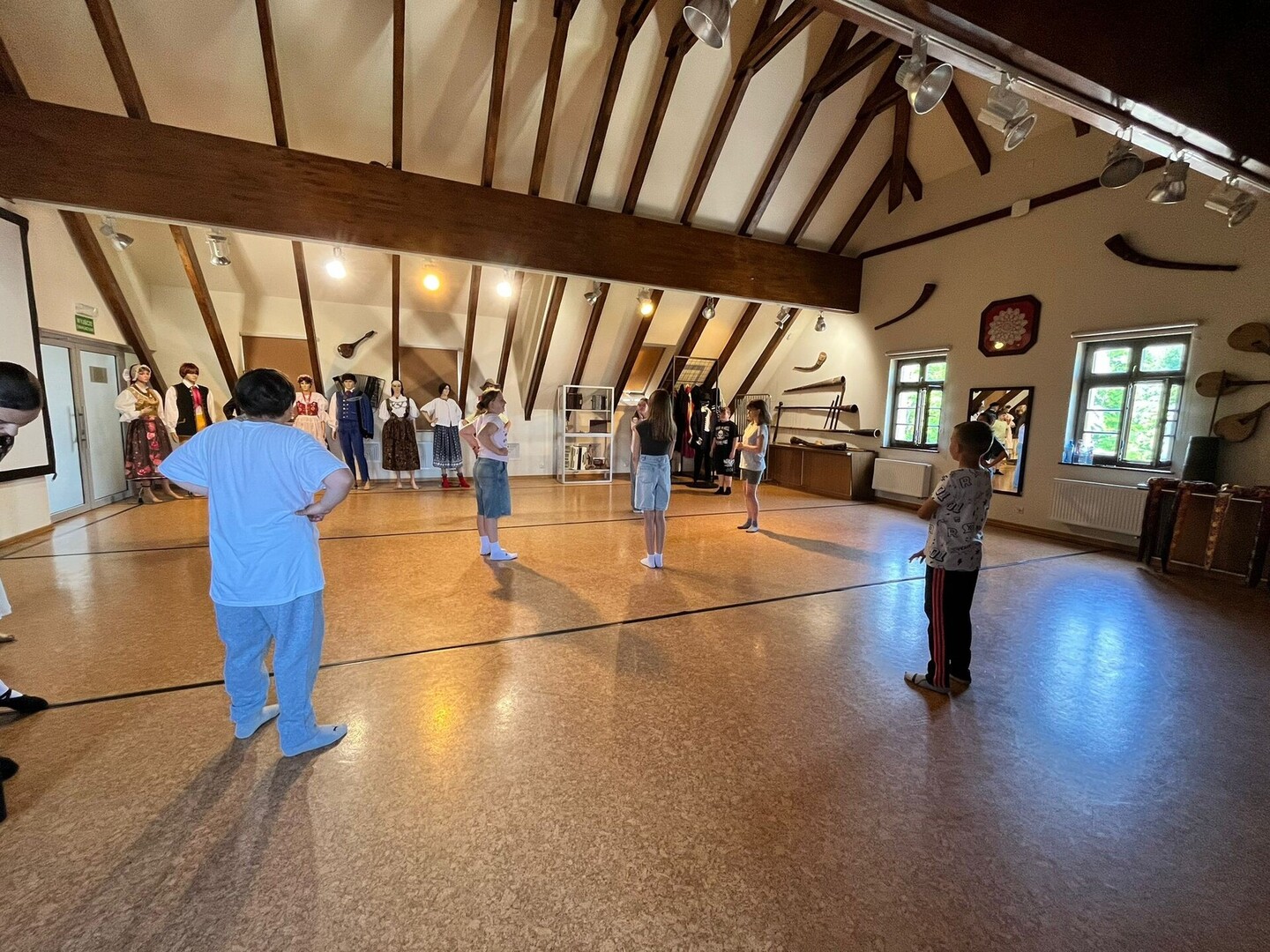 Uczniowie z zaangażowaniem uczestniczyli w specjalnie przygotowanych warsztatach artystyczno-tanecznych, które nie tylko rozwijały sprawność i wrażliwość estetyczną, ale także wzbogacały o nowe doświadczenia i umiejętności. To była prawdziwa lekcja kultury ludowej – żywa, dynamiczna i inspirująca.