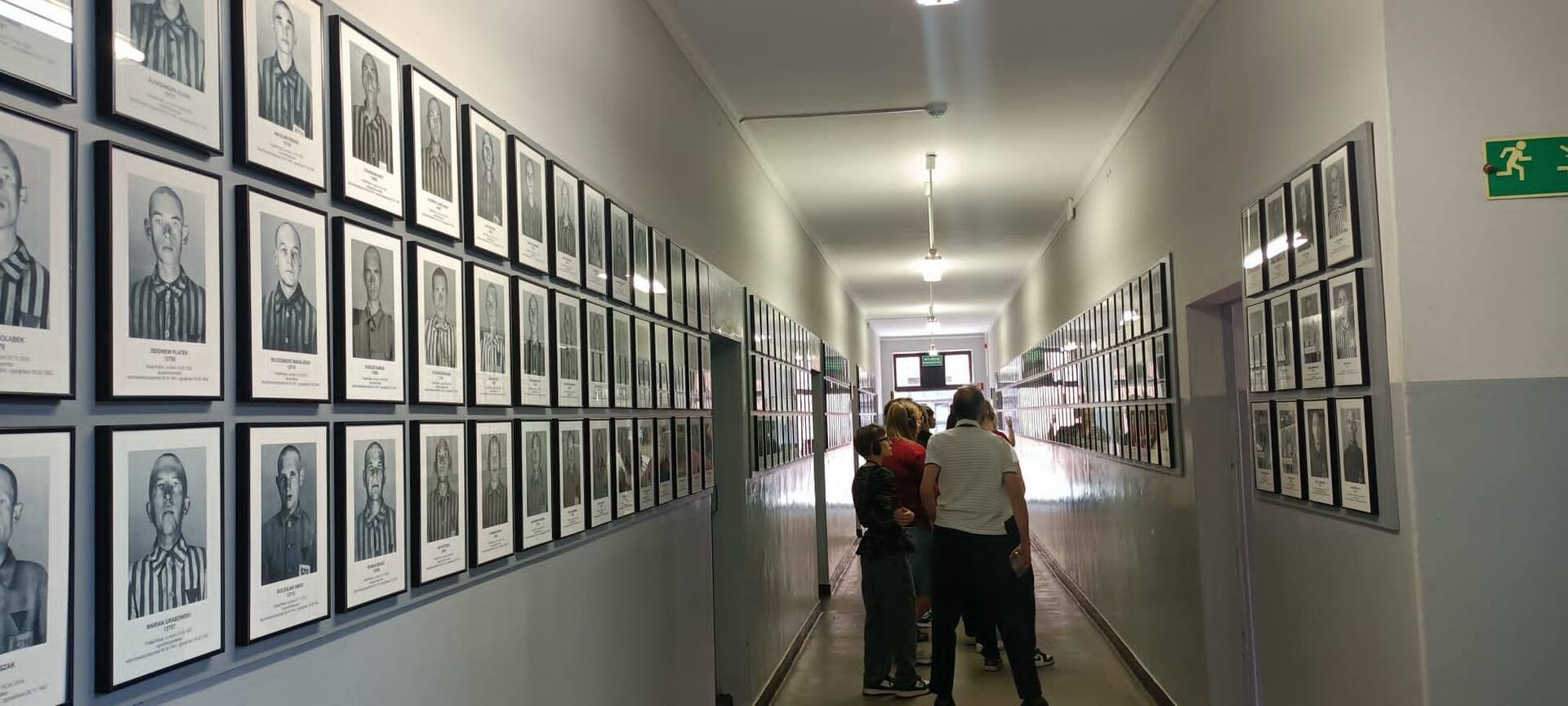 Po dotarciu do Oświęcimia rozpoczęliśmy zwiedzanie Auschwitz I – pierwszej części obozu. Przewodnik opowiadał o historii tego miejsca, jego powstaniu oraz losach więźniów. Zobaczyliśmy słynną bramę z napisem "Arbeit macht frei", baraki więzienne, celę św. Maksymiliana Kolbego oraz ścianę straceń. Duże wrażenie zrobiły na nas gabloty z osobistymi przedmiotami więźniów: butami, walizkami, okularami czy dziecięcymi zabawkami.