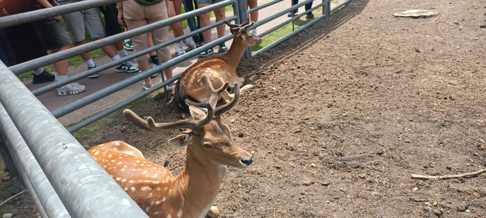 W otoczeniu żubrów uczniowie zobaczyli też inne gatunki: jelenie, sarny, daniele, muflony, bażanty, a spośród ptaków – kaczki, łabędzie, bernikle, pawie i… domowe osiołki, kozy czy króliki, które często swobodnie przechadzały się wśród zwiedzających .