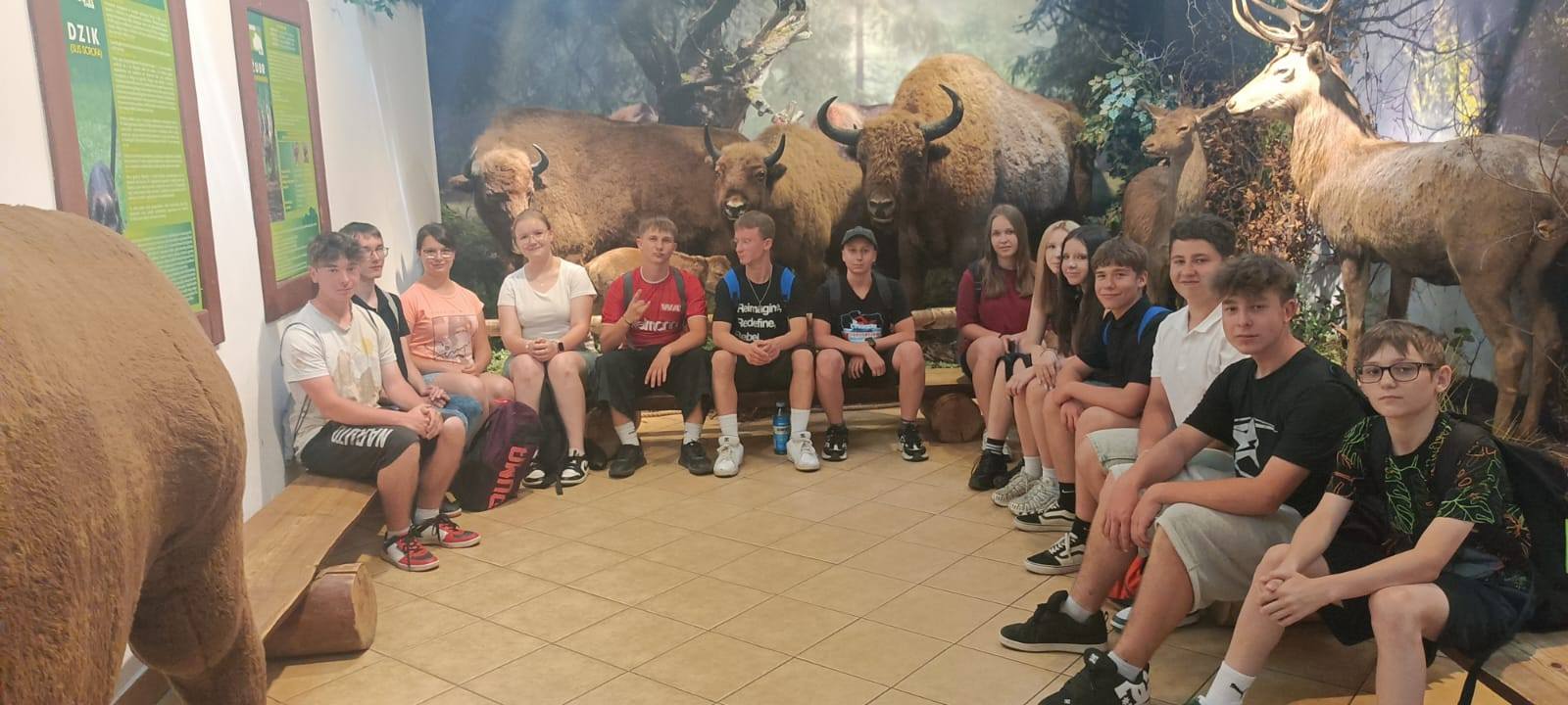 Podróż autokarem trwała około 1,5,h i minęła w miłej atmosferze. Po przyjeździe na miejsce uczniowie rozpoczęli zwiedzanie zagrody, w której można było zobaczyć żubry. Pani przewodnik opowiedziała wiele interesujących ciekawostek o życiu żubrów, ich zwyczajach oraz o tym, jak ważna jest ich ochrona. Dzieci miały okazję zobaczyć żubry z bardzo bliska, co zrobiło na nich ogromne wrażenie.