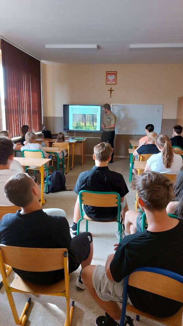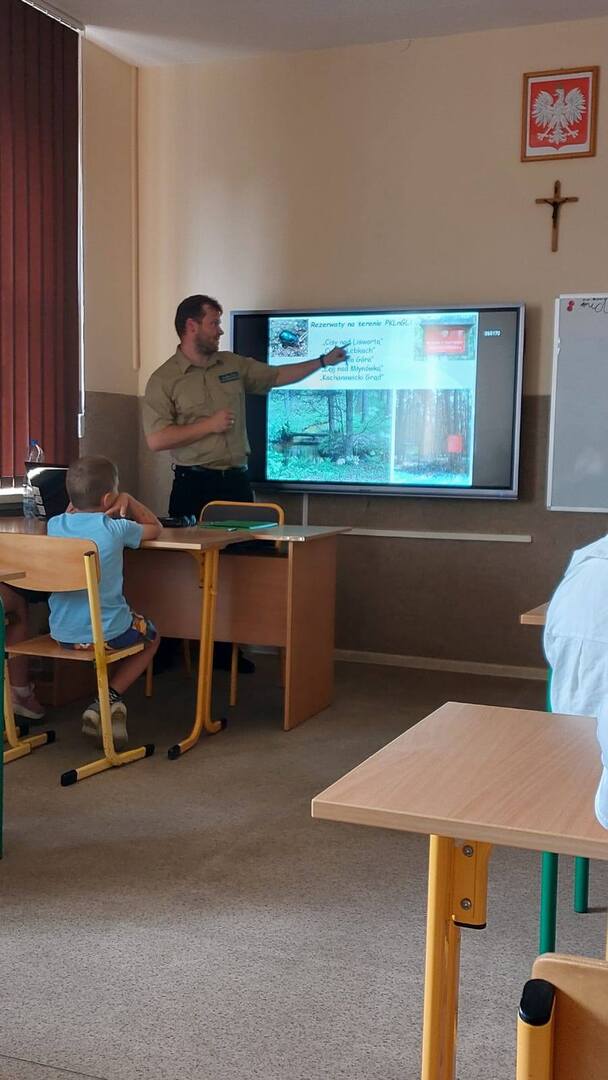 23.06.2025 odwiedził nas przedstawiciel Zespołu Parków Krajobrazowych Województwa Śląskiego. Przedstawił nam formy ochrony oraz zapoznał nas wirtualnie z Parkiem Krajobrazowym „Lasy nad Górną Liswartą”, obejmującym ochroną najcenniejsze fragmenty terenów znajdujących się w górnym odcinku rzeki Liswarty. Mogliśmy także zobaczyc zwierzęta w ich naturalnym środowisku, zarejestrowane przez fotopułapki leśne, takie jak wilki, bobry, żurawie czy dziki. To była interesujaca lekcja przyrody. Dziekujemy.