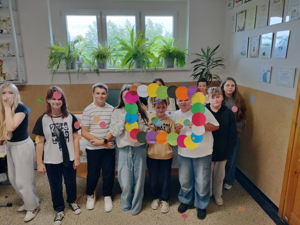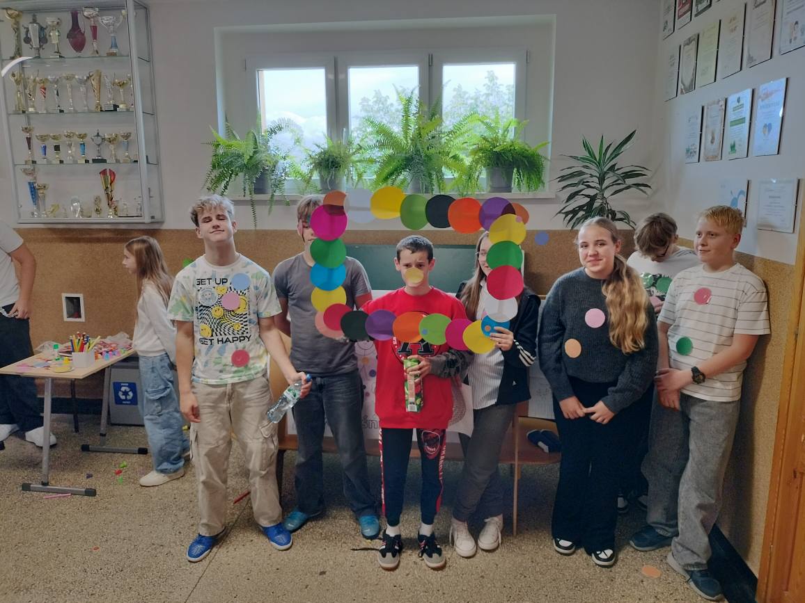 Dzięki obchodom Międzynarodowego Dnia Kropki, przygotowanym przez członków SU i SKW, przypomnieliśmy sobie, jak ważna jest wiara w siebie, odkrywanie własnych talentów i odwaga, by je pokazywać. Nasza szkoła na jeden dzień zamieniła się w przestrzeń pełną kolorów, uśmiechu, twórczej energii i oczywiście świetnej zabawy. Uczniowie mieli okazję rozwijać swoją kreatywność, sprawdzać pomysłowość, zdrowo rywalizować i udowodnić, że z pozornie prostych rzeczy – jak mała kropka – mogą powstać wyjątkowe historie i dzieła. Dzień Kropki to nie tylko zabawa, ale także inspiracja do tego, by dostrzegać w sobie potencjał i odważnie sięgać po marzenia.