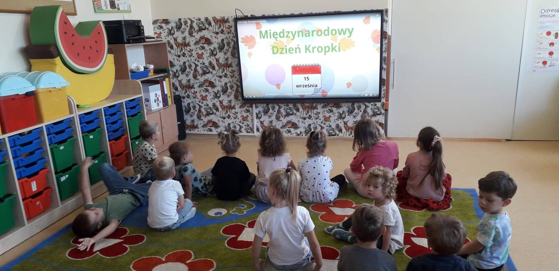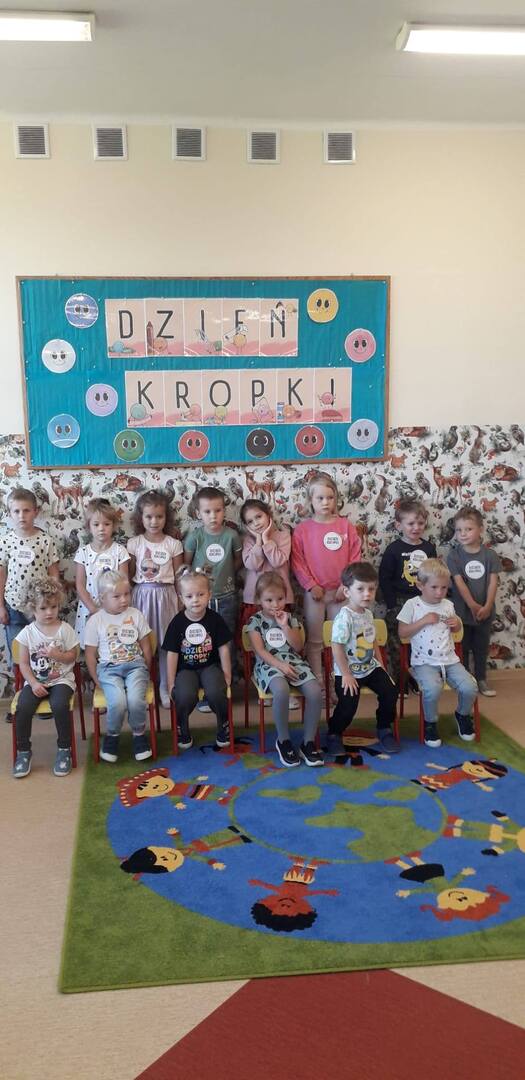 15 września obchodziliśmy w przedszkolu Międzynarodowy Dzień Kropki. Na zajęciach robiliśmy wiele ciekawych rzeczy m.in.: uważnie wysłuchaliśmy opowiadania jak zwyczajna kropka zmieniła świat małej dziewczynki o imieniu Vashti, układaliśmy kolorowe puzzle. Kropki gościły nie tylko na ubraniach, ale też w zabawach plastycznych i ruchowych. Tego dnia było bardzo wesoło i kolorowo. Dzień Kropki pokazał przedszkolakom, że każdy z nas ma jakieś ukryte zdolności i talenty.