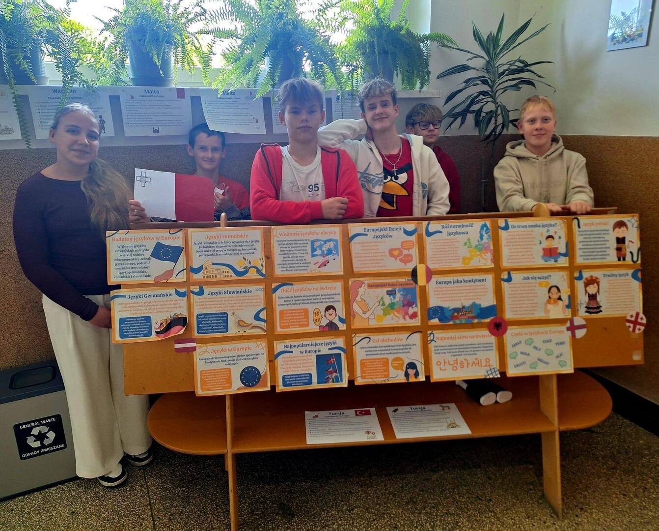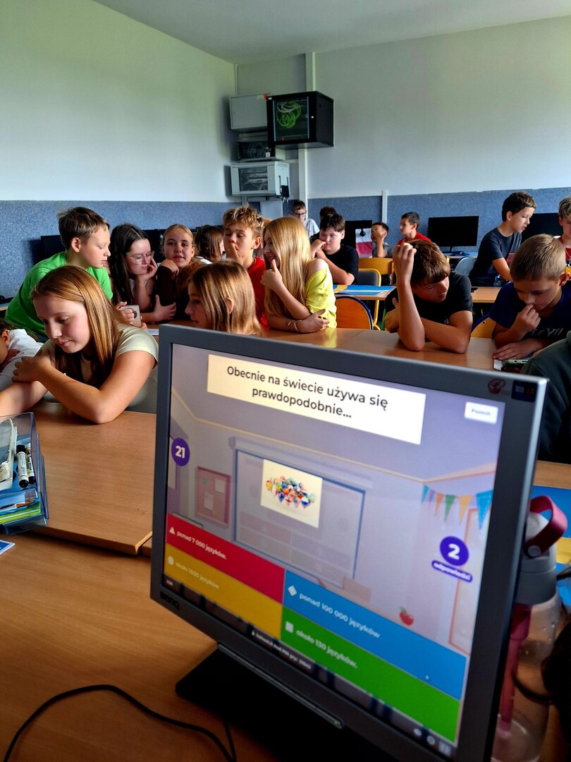 W minionych dniach członkowie naszej szkolnej społeczności poznawali ciekawostki o państwach i językach europejskich poprzez przygotowane prezentacje i materiały. Zdobyta wiedza stała się podstawą do drużynowego quizu, stanowiącego zwieńczenie obchodów. W zmaganiach uczestniczyły zespoły złożone z uczniów różnych klas, co sprzyjało integracji i współpracy.