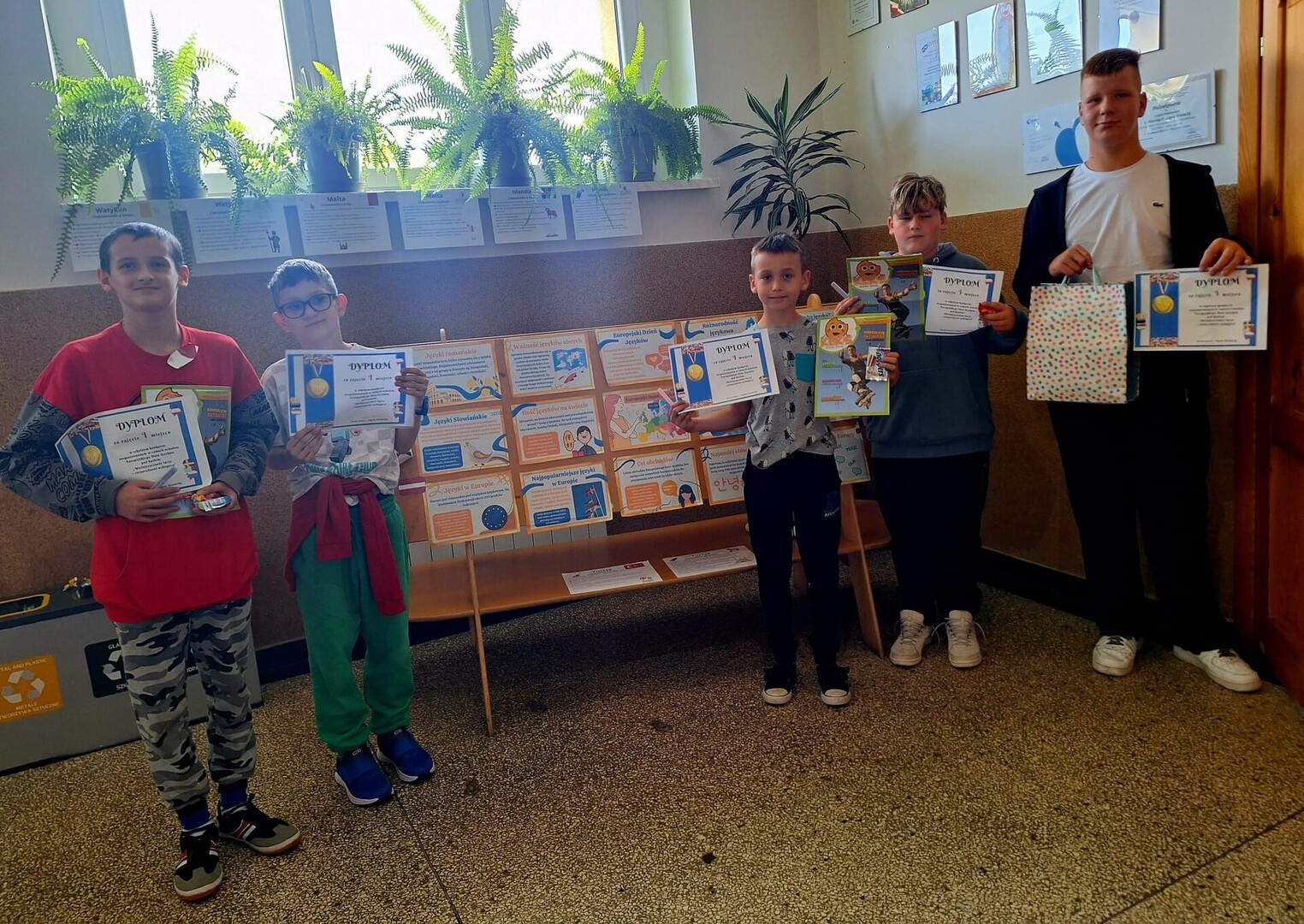 Serdecznie gratulujemy Marcinowi Janusowi (klasa IV), Jakubowi Osadnikowi (klasa IV), Oskarowi Wojsykowi (klasa VI), Dawidowi Grzybowi (klasa VII) i Szymonowi Szkopowi (klasa VII), którzy, imponując znajomością językowo-kulturowych faktów, stanęli na najwyższym stopniu podium.
