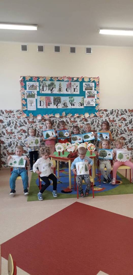 W tym dniu odbyły się zajęcia związane z tematyką drzew. Dzieci poznały ich budowę, etapy wzrastania drzewa oraz zmienności wyglądu podczas pór roku. W czasie zabaw badawczych dotykały liści rożnych drzew oraz ich owoców. Święto Drzewa to doskonała okazja by wśród najmłodszych kształtować postawę ekologiczną oraz rozbudzać w nich poczucie odpowiedzialności za zieleń wokół nas.