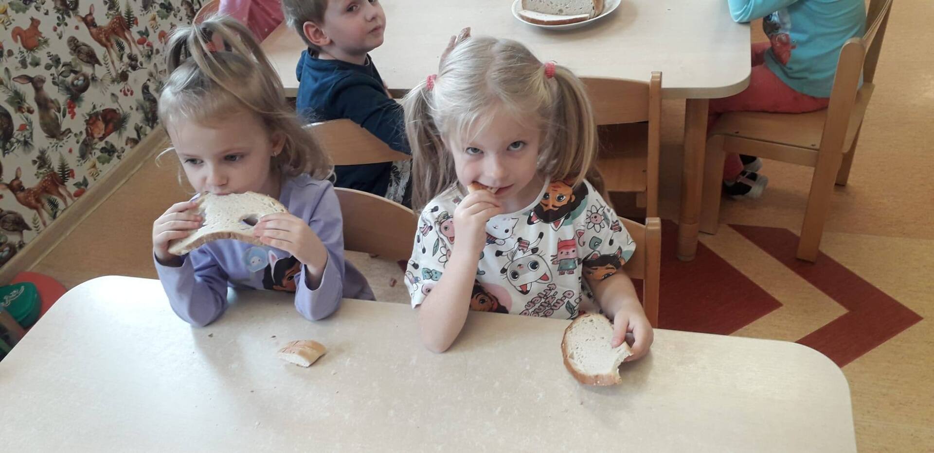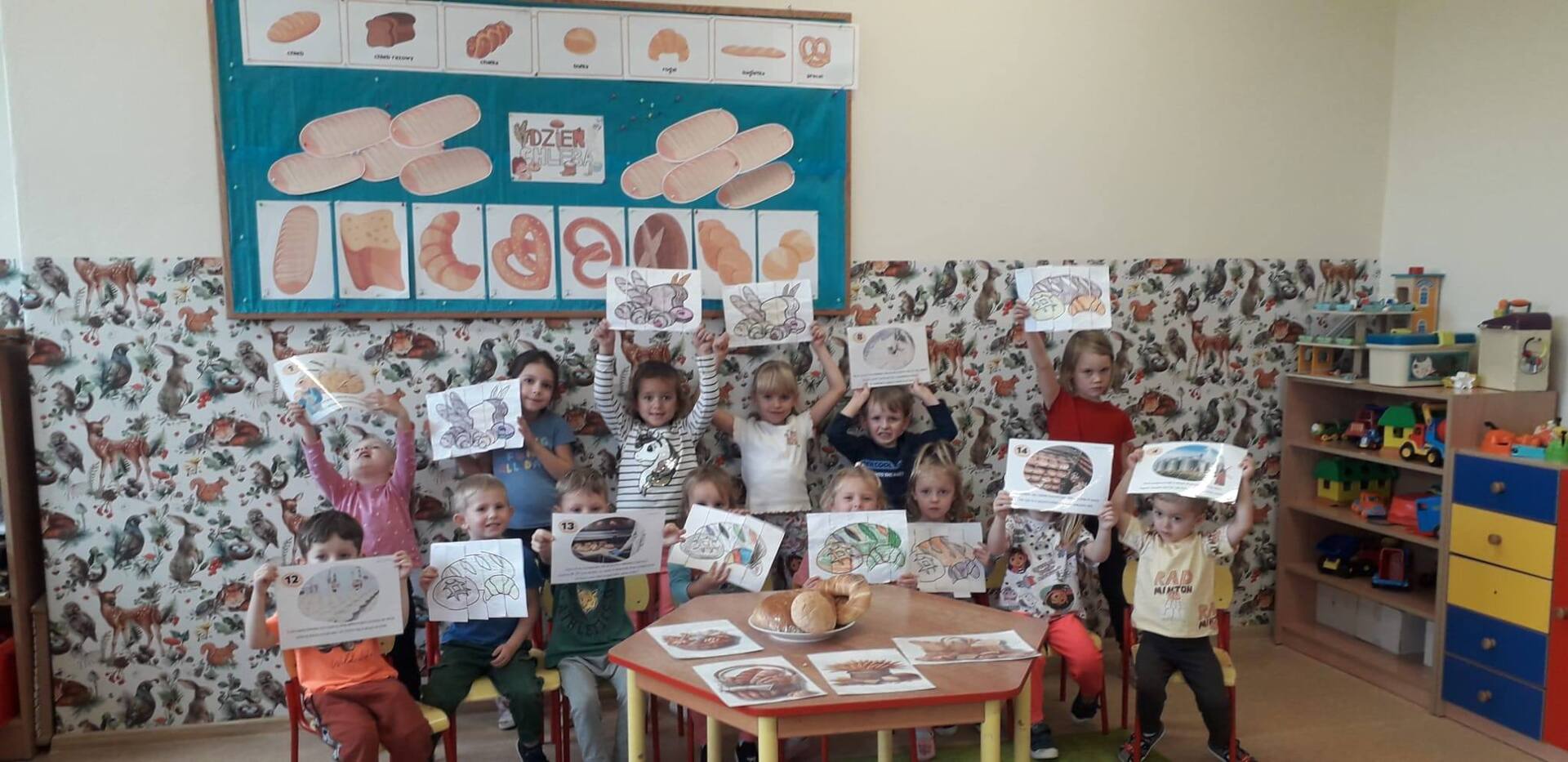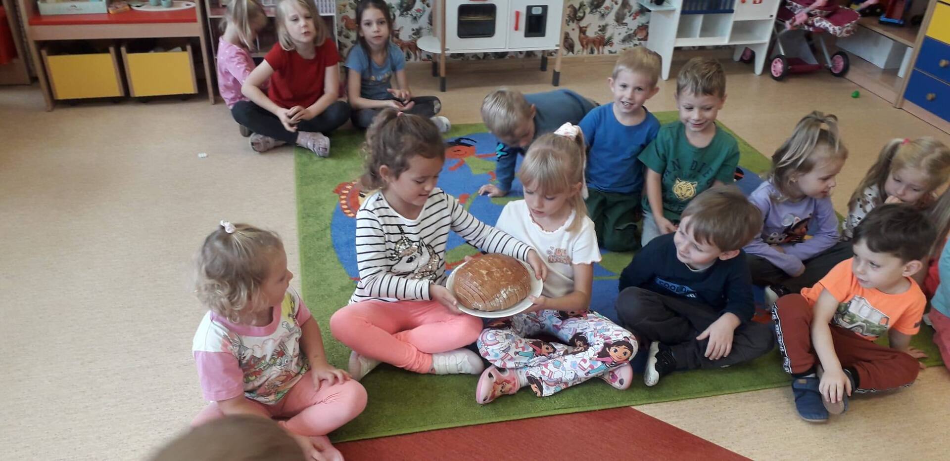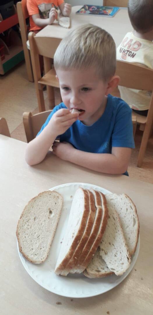 16 października nasze przedszkolaki dowiedziały się jak powstaje mąka oraz jakie ziarna wykorzystywane są do jej produkcji. Historyjka przybliżyła dzieciom drogę do powstania chleba od ziarenka do bochenka. Obchody Światowego Dnia Chleba miały na celu zapoznanie dzieci z kolejnymi etapami produkcji chleba oraz uświadomienie im, że chleb jest symbolem ciężkiej pracy wielu ludzi: rolnika, młynarza i piekarza. To także okazja do rozwijania wiedzy o zdrowym odżywianiu. Na zakończenie zajęć nie zabrakło degustacji chlebka oraz rogalików.