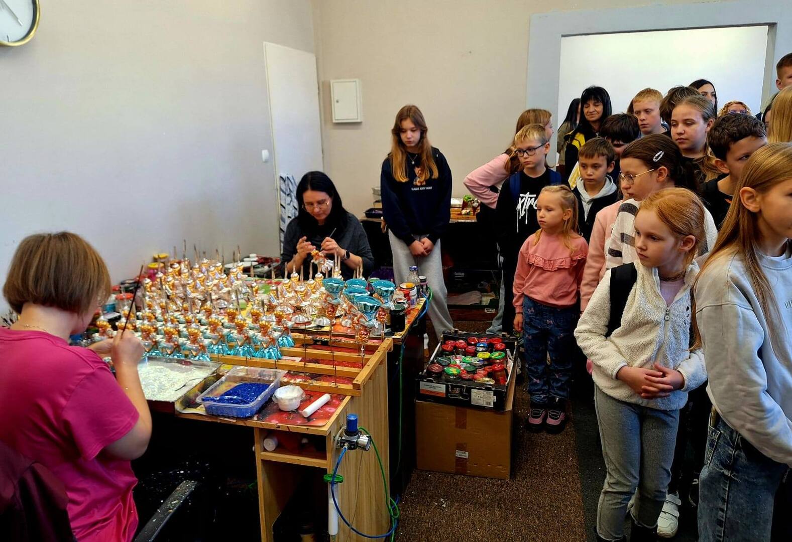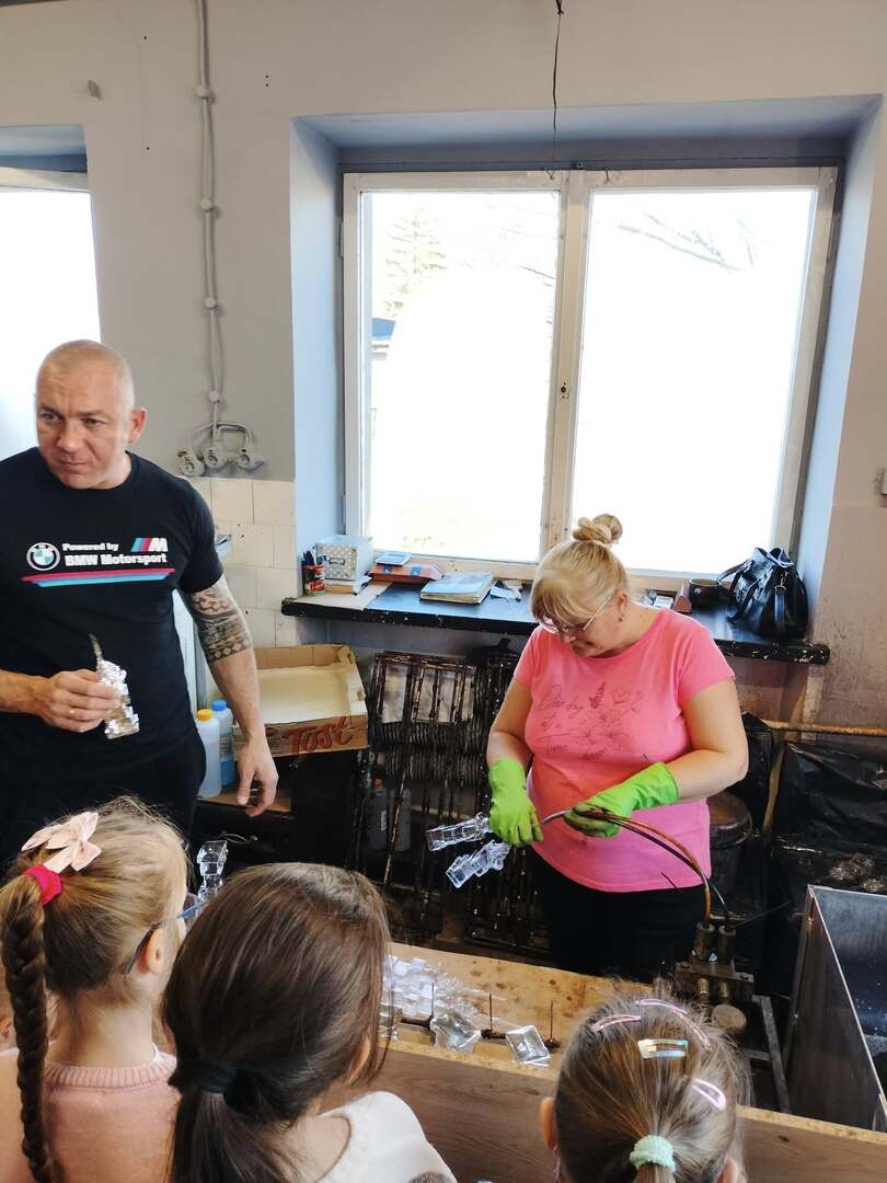 Pierwszym punktem programu były warsztaty u producenta wyrobów szklanych STARGLASS Dla Mnie Bombka – miejscu, gdzie magia świąt nabiera realnych kształtów. Uczniowie obserwowali, jak z rozgrzanego szkła rodzi się delikatna bombka, a każdy etap jej powstawania wymaga niezwykłej precyzji i cierpliwości. Ręczna praca dmuchaczy szkła i dekoratorek zrobiła ogromne wrażenie – dopiero z bliska można docenić, jak trudne jest stworzenie tak kruchego dzieła sztuki.